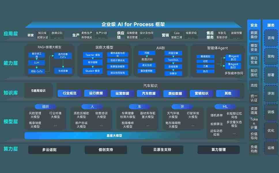 PA旗舰厅问学智车解决方案是一套基于AI技术的汽车行业智能化系统,,覆盖从底层算力到顶层AI应用的全栈方案。。。方案由算力层、、、、模型层和应用层组成:算力层,,方案支持多种一体机配置,,,,具备云端灵活部署、、、多云适配以及动态优化计算资源的能力;模型层,,,,PA旗舰厅问学平台版提供了企业级AI应用一站式构建与管理平台,,支持基于后训练强化技术的汽车企业专属模型的训练、、、、评测和运营;应用层,,,PA旗舰厅问学DeepSeek版提供包括超级员工、、、智能招采、、、智能营销、、智能客服、、AI for BI等一系列解决方案,,,可助力汽车行业实现数字化转型,,,,让管理更智能、、响应更敏捷。。